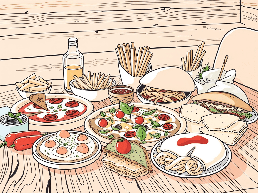 A sandwich, pasta, lunch, and dinner,